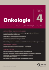 www.onkologiecs.cz ONKOLOGIE 231 SLOVO ÚVODEM Léčba nádorů žaludku Léčba nádorů žaludku Vážené kolegyně, vážení kolegové, hlavním tématem tohoto vydání časopisu Onkologie jsou nádory žaludku, kde byly v posledních letech publikovány výsledky řady přelomových studií, které vedly ke změně léčebného přístupu k tomuto onemocnění. Globálně se jedná o 5. nejčastější malignitu a současně je to 5. nejčastější příčina úmrtí na zhoubné onemocnění. Ve střední a západní Evropě je patrný pokles incidence distálních nádorů žaludku a současný vzestup proximálně uložených nádorů – kardie a gastroesophageální junkce. Vzhledem k rostoucí incidenci, anatomické lokalizaci a obdobnému terapeutickému přístupu jsou diskutovány i tyto nádory. V případě lokoregionálně pokročilých stadií onemocnění je diskutován vývoj terapeutického přístupu od primárního operačního výkonu v minulosti, přes současný standard (perioperační chemoterapii), až po nové trendy kombinující perioperační chemoterapii s cílenou terapií, či imunoterapií. Nicméně na případné začlenění těchto nových trendů do guidelines budeme muset vyčkat výsledků aktuálně probíhajících studií. Zvláště zajímavá je populace MSI-H lokoregionálně pokročilých nádorů, kde je imunoterapie spojena s vysokou mírou dosažených pCR, což otevírá diskuzi o možném non-operačním řešení těchto pacientů. U pacientů s Her2 negativním metastatickým karcinomem žaludku byla dlouhodobě standardem léčba platinovým dubletem. V současnosti má pevné místo v léčbě vhodných pacientů kombinace chemoterapie s imunoterapií v 1. linii onemocnění. Současně jsou diskutovány i možnosti léčby po progresi onemocnění, kde se ukazuje, že obdobně jako v případě pacientů s metastatickým kolorektálním karcinomem je pokračující léčba dalšími řadami systémové terapie spojena s kontrolou onemocnění a prodloužením přežití. Her2 pozitivní metastatický karcinom žaludku byl dlouhodobě léčen v 1. linii léčby chemoterapií s trastuzumabem. Článek přináší četné negativní studie v rámci této populace pacientů, kdy jednou z příčin může být i značná časová a prostorová heterogenita exprese Her2. I zde ale recentně došlo k průlomu, kdy je kombinace chemoterapie, cílené terapie a imunoterapie spojena s prodloužením přežití. Navíc se zdá, že trastuzumab deruxtecan si „našel“ další diagnózu, kde je spojený s významným klinickým benefitem. Lepší poznání molekulárního podkladu nádorových onemocnění vede k identifikaci nových potenciálně targetabilních cílů. V případě nádorů žaludku je to nová podskupina, tzv. CLDN 18.2 pozitivní karcinom, kde je terapie zolbetuximabem v kombinaci s chemoterapií akceptována jako nový standard léčby. Další podskupinou je FGFR2b pozitivní karcinom, kde výsledky studií fáze II přinesly slibné signály. V současnosti probíhající studie fáze III mají za cíl definitivně prokázat význam blokování FGFR2b, bemarituzumabem. Specifickou populací, která je diskutována, je i MSI-H karcinom žaludku, kde imunoterapie je spojena s hlubokou mírou odpovědi a dlouhodobou kontrolou onemocnění. Konečně prezentovaná kazuistika dokladuje význam sekvenční terapie, která může být spojena s dlouhodobou kontrolou onemocnění v případě racionální volby jednotlivých linií. Věřím, že následující články vás zaujmou a pomohou zorientovat se v nových možnostech systémové léčby tohoto onemocnění. Přeji vám příjemné čtení. Marián Liberko Onkologická klinika, 3. LF UK a FNKV, Praha ONKOLOGIE ROČNÍK 18, 2024, ČÍSLO 4 TIRÁŽ Redakční rada: prof. MUDr. Jitka Abrahámová, DrSc., MUDr. Viera Bajčiová, CSc., prof. MUDr. Tomáš Büchler, Ph.D., MUDr. Karel Cwiertka, Ph.D., MUDr. Miroslav Důra, doc. MUDr. Marián Hajdúch, Ph.D., MUDr. Josef Chovanec, Ph.D., doc. MUDr. Ondřej Kodet, Ph.D., MUDr. Jindřich Kopecký, Ph.D., MUDr. Ivana Krajsová, MUDr. Juraj Kultan, MUDr. Marián Liberko, MUDr. Zdeněk Linke, prof. MUDr. Bohuslav Melichar, Ph.D., prof. MUDr. Jiří Petera, Ph.D., doc. MUDr. Renata Soumarová, Ph.D., MUDr. Vladimíra Stáhalová, doc. MUDr. Martin Svatoň, Ph.D., MUDr. Hana Šiffnerová, Ph.D., MUDr. Martin Špaček, Ph.D., doc. MUDr. Hana Študentová, Ph.D., doc. MUDr. Jaroslav Vaňásek, CSc. Vydavatel: SOLEN, s. r. o., Lazecká 297/51, 779 00 Olomouc, IČ 25553933 Adresa redakce: SOLEN, s. r. o., Lazecká 297/51, 779 00 Olomouc tel: 582 397 407, fax: 582 396 099, www.solen.cz Redaktorka: Mgr. Eva Kultanová, kultanova@solen.cz Grafická úprava a sazba: DTP SOLEN, Aneta Děrešová Obchodní oddělení: Ing. Lenka Mihulkova, mihulkova@solen.cz, Charlese de Gaulla 3, 160 00 Praha 6, mob.: 734 567 854 Daniela Stojanovski, stojanovski@solen.cz Charlese de Gaulla 3, 160 00 Praha 6, mob.: 721 603 709 Citační zkratka: Onkologie. Registrace MK ČR pod číslem 17305 ISSN 1802-4475 (print) ISSN 1803-5345 (on-line) Časopis je indexován v: EMBASE, Scopus. Články prochází recenzí. Vydavatel nenese odpovědnost za údaje a názory autorů jednotlivých článků či inzerátů. Reprodukce obsahu je povolena pouze s přímým souhlasem redakce. Redakce si vyhrazuje právo příspěvky krátit či stylisticky upravovat. Na otištění rukopisu není právní nárok. Předplatné pěti čísel časopisu včetně supplement na rok 2024. ČR: tištěná 1 350 Kč, elektronická 810 Kč. Objednávky na www.solen.cz ➜ predplatne@solen.cz nebo 585 204 335.