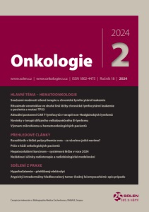 ONKOLOGIE / Onkologie. 2024;18(2):92-97 / www.onkologiecs.cz 92 HLAVNÍ TÉMA Současné možnosti cílené terapie u chronické lymfocytární leukemie Současné možnosti cílené terapie u chronické lymfocytární leukemie Martin Špaček I. interní klinika – hematologie, Všeobecná fakultní nemocnice a 1. LF UK, Praha V terapii chronické lymfocytární leukemie (CLL) došlo v posledním desetiletí k zásadním změnám s výrazným zlepšením léčebných výsledků a delším přežitím pacientů s tímto onemocněním. Revoluční změnou byl příchod cílených léků, a to zejména inhibitorů Brutonovy tyrozinkinázy (akalabrutinib, ibrutinib, zanubrutinib) a Bcl2 inhibitorů (venetoklax). Tyto malé molekuly již i v běžné praxi prakticky nahradily chemoterapii, a to nejdříve v relapsech, a v poslední době i v první linii léčby CLL. Mezi hlavní výhody cílené terapie patří lepší tolerance léčby a vysoká účinnost, a to i u skupiny pacientů s prognosticky nepříznivou aberací genu TP53, kteří zpravidla byli refrakterní na chemoterapii. Tento článek shrnuje aktuální možnosti cílené terapie a hlavní trendy vývoje léčby CLL. Klíčová slova: chronická lymfocytární leukemie, BTK inhibitory, Bcl2 inhibitory. Current targeted therapy options in chronic lymphocytic leukemia The treatment of chronic lymphocytic leukemia (CLL) has undergone profound changes in the last decade with significant improvements in therapeutic outcomes and longer survival of patients with this disease. A major change has been the advent of targeted drugs, especially Bruton‘s tyrosine kinase inhibitors (acalabrutinib, ibrutinib, zanubrutinib) and Bcl2 inhibitors (venetoclax). These small molecules have already practically replaced chemotherapy in routine practice, first in relapse setting and more recently in first-line treatment of CLL. The main advantages of targeted therapy include better tolerance to treatment and high efficacy, including in the group of patients with prognostically unfavourable TP53 gene aberrations, who were usually refractory to chemotherapy. This article summarizes the current options for targeted therapy and the main trends in CLL treatment. Key words: chronic lymphocytic leukemia, BTK inhibitors, Bcl2 inhibitory. Úvod Chronická lymfocytární leukemie (CLL) patří mezi nejčastější hematoonkologická onemocnění v dospělosti s incidencí 5–6 případů na 100 tisíc obyvatel za rok. Zpravidla se jedná o starší pacienty s mediánem věku při diagnóze kolem 70 let, může se ale vyskytnout také u výrazně mladších nemocných i kolem 30 let. Většina nemocných je v současné době diagnostikována v časném klinickém stadiu, kdy mnohdy bývá přítomna pouze lymfocytóza, která je zachycena při vyšetření krevního obrazu např. v rámci preventivních prohlídek nebo při předoperačním vyšetření apod. V případě lymfocytózy nejasné etiologie (není zjevná infekční příčina apod.) je zlatým standardem kromě mikroskopického diferenciálu leukocytů provedení imunofenotypizace pomocí průtokové cytometrie. CLL buňky exprimují velmi specifický imunofenotyp s pozitivitou znaků CD19, CD5, CD23, CD200 atd. CLL je onemocnění s významně variabilním průběhem, řada pacientů může být dlouhodobě pouze sledována a část z nich DECLARATIONS: Declaration of originality: The manuscript is original and has not been published or submitted elsewhere. Ethical principles compliance: The authors attest that their study was approved by the local Ethical Committee and is in compliance with human studies and animal welfare regulations of the authors’ institutions as well as with the World Medical Association Declaration of Helsinki on Ethical Principles for Medical Research Involving Human Subjects adopted by the 18th WMA General Assembly in Helsinki, Finland, in June 1964, with subsequent amendments, as well as with the ICMJE Recommendations for the Conduct, Reporting, Editing, and Publication of Scholarly Work in Medical Journals, updated in December 2018, including patient consent where appropriate. Conflict of interest and financial disclosures: None. Funding/Support: None. Cit. zkr: Onkologie. 2024;18(2):92-97 https://doi.org/10.36290/xon.2024.017 Článek přijat redakcí: 31. 1. 2024 Článek přijat k tisku: 1. 3. 2024 MUDr. Martin Špaček, Ph.D. martin.spacek@vfn.cz